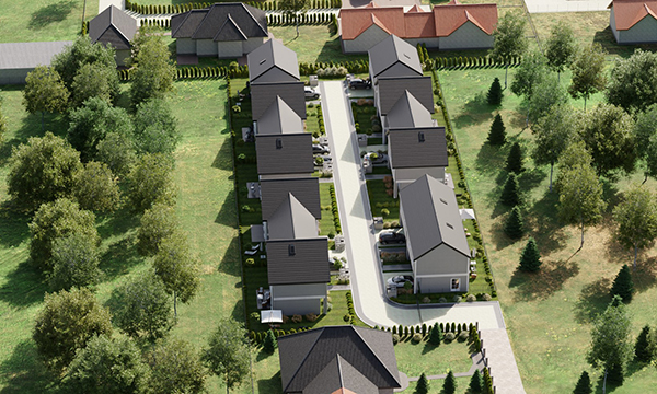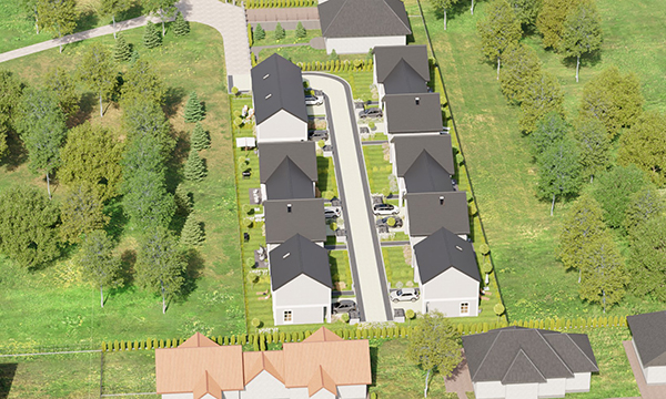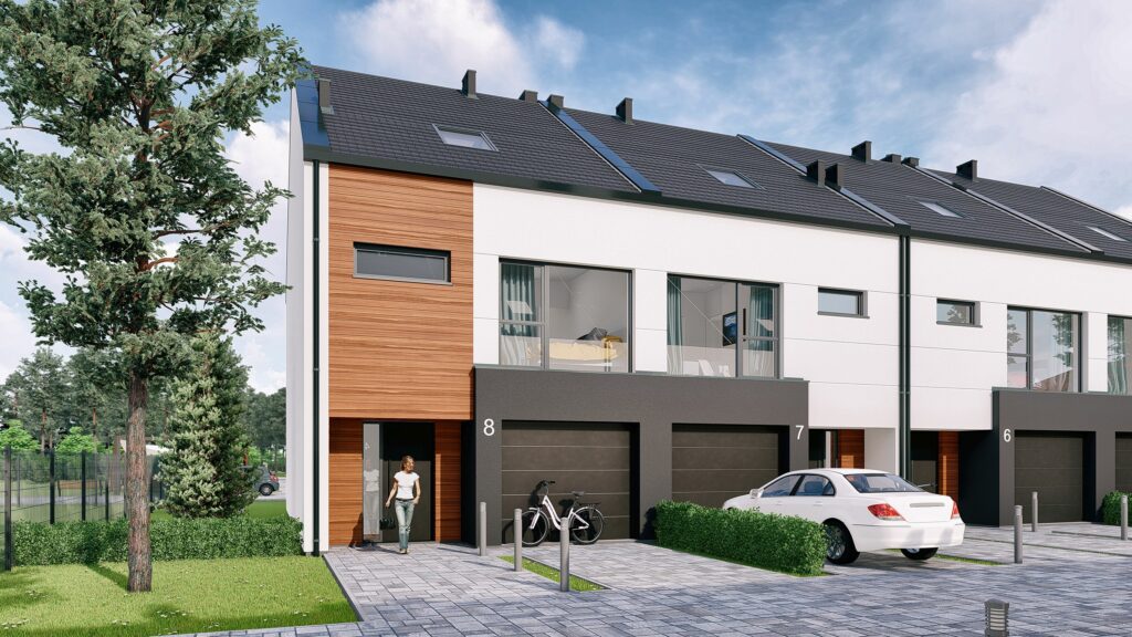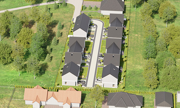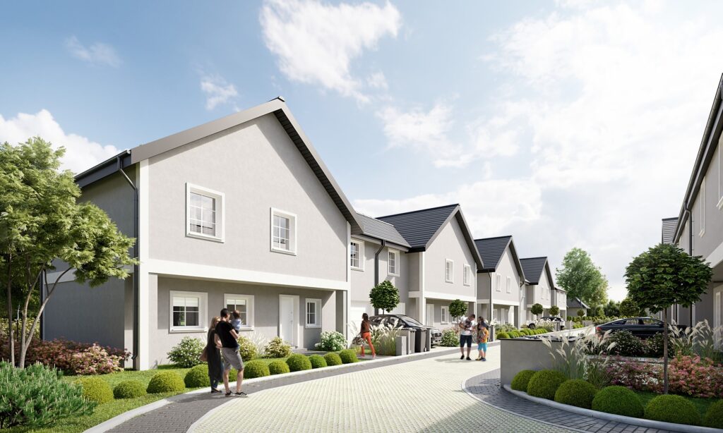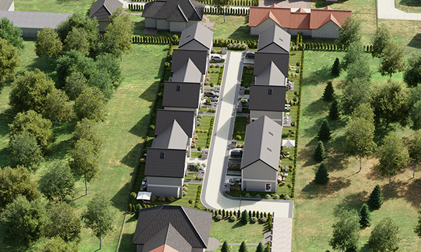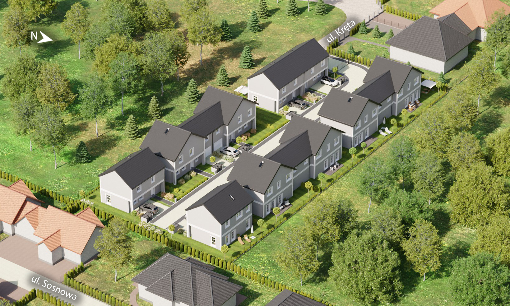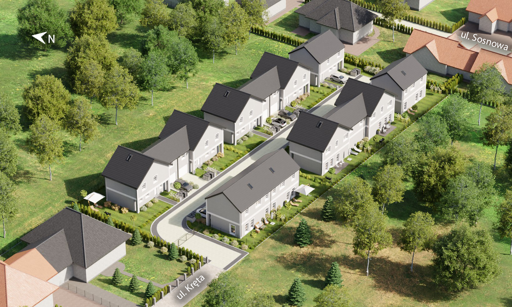 Każdy dom posiada prywatny ogród. To idealne miejsce na relaks przy porannej kawie i wypoczynek na świeżym powietrzu. Wewnętrzna droga jest zamknięta bramą a całe osiedle ogrodzone. Dzięki temu masz pewność, że najmłodsi są bezpieczni, gdy bawią się z sąsiadami na osiedlu.
