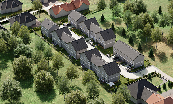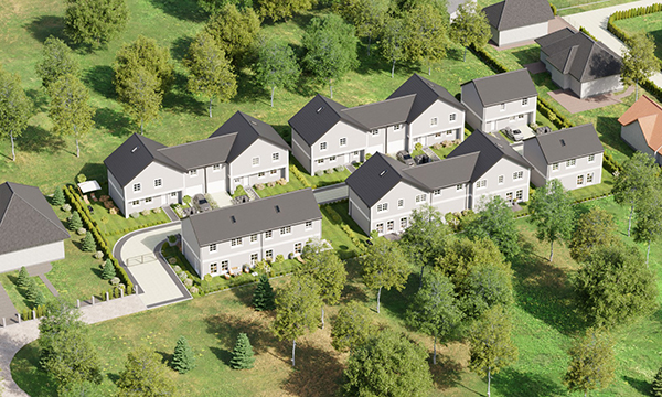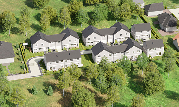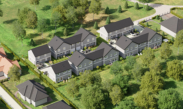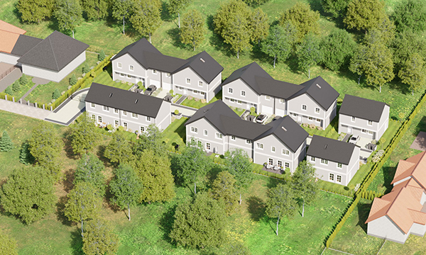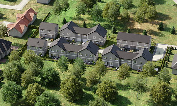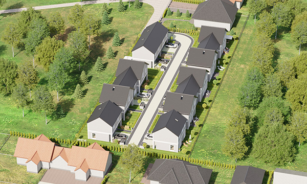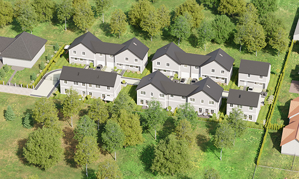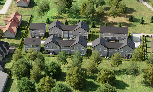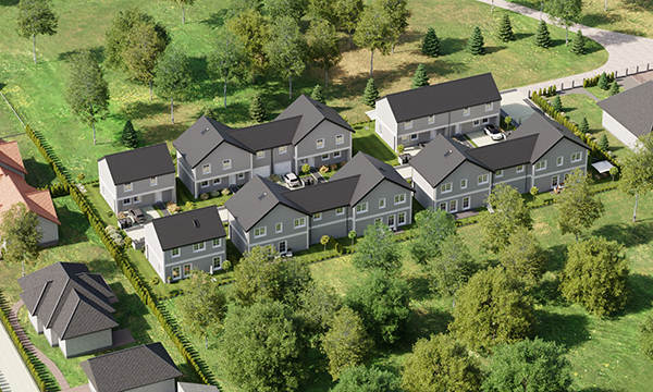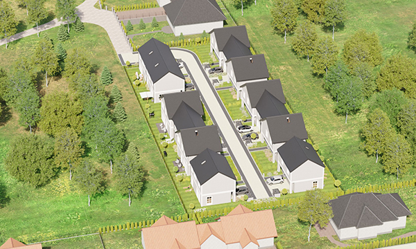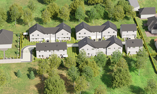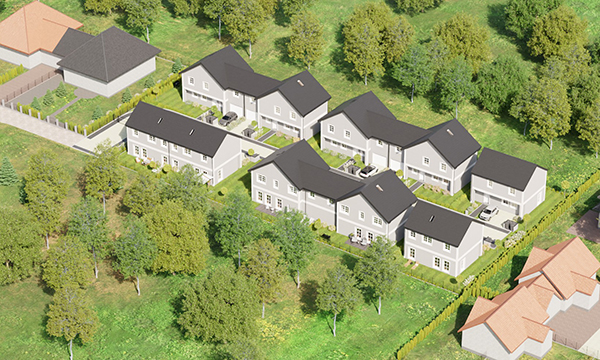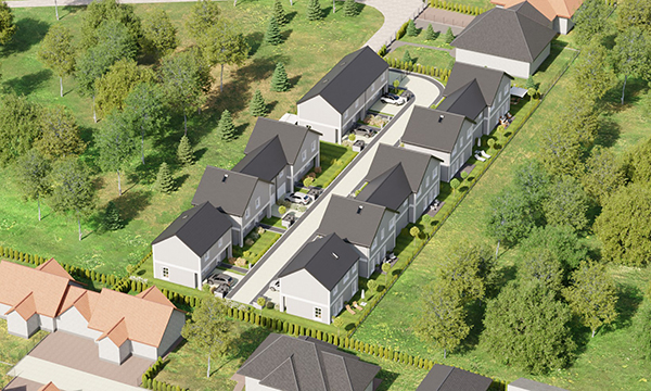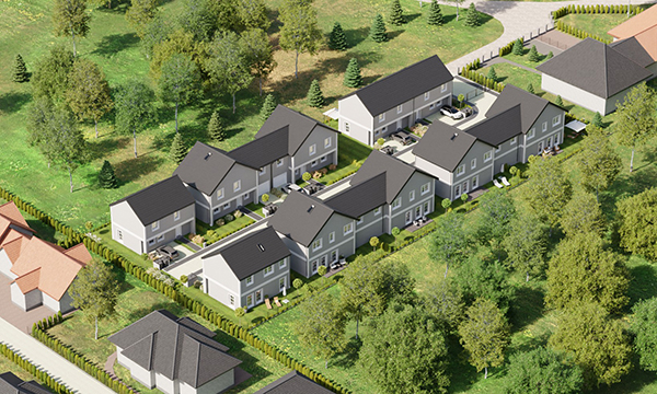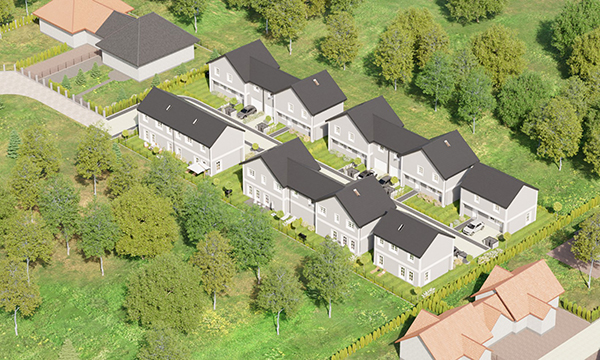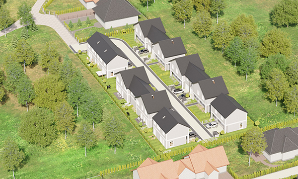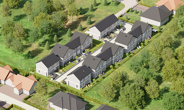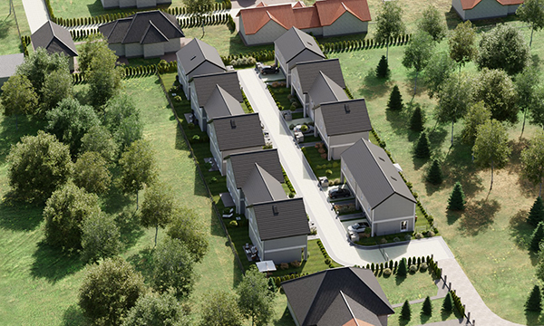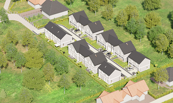 Każdy dom posiada prywatny ogród. To idealne miejsce na relaks przy porannej kawie i wypoczynek na świeżym powietrzu. Wewnętrzna droga jest zamknięta bramą a całe osiedle ogrodzone. Dzięki temu masz pewność, że najmłodsi są bezpieczni, gdy bawią się z sąsiadami na osiedlu.