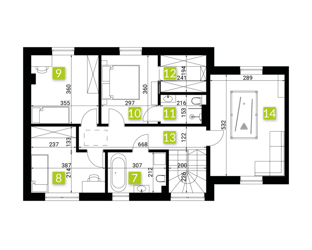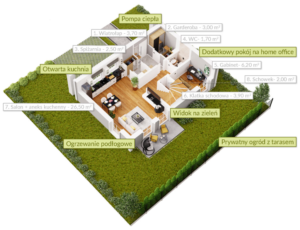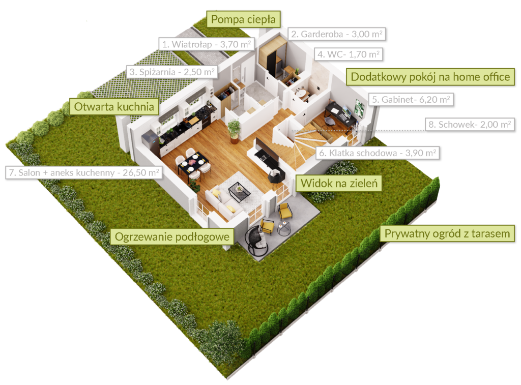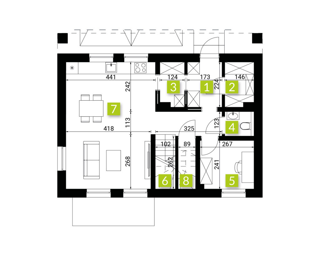| 7 | Salon + aneks kuchenny | 26.5 m2 |