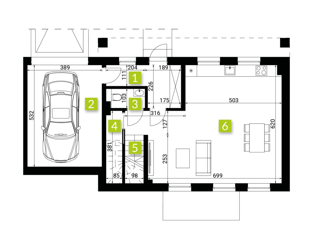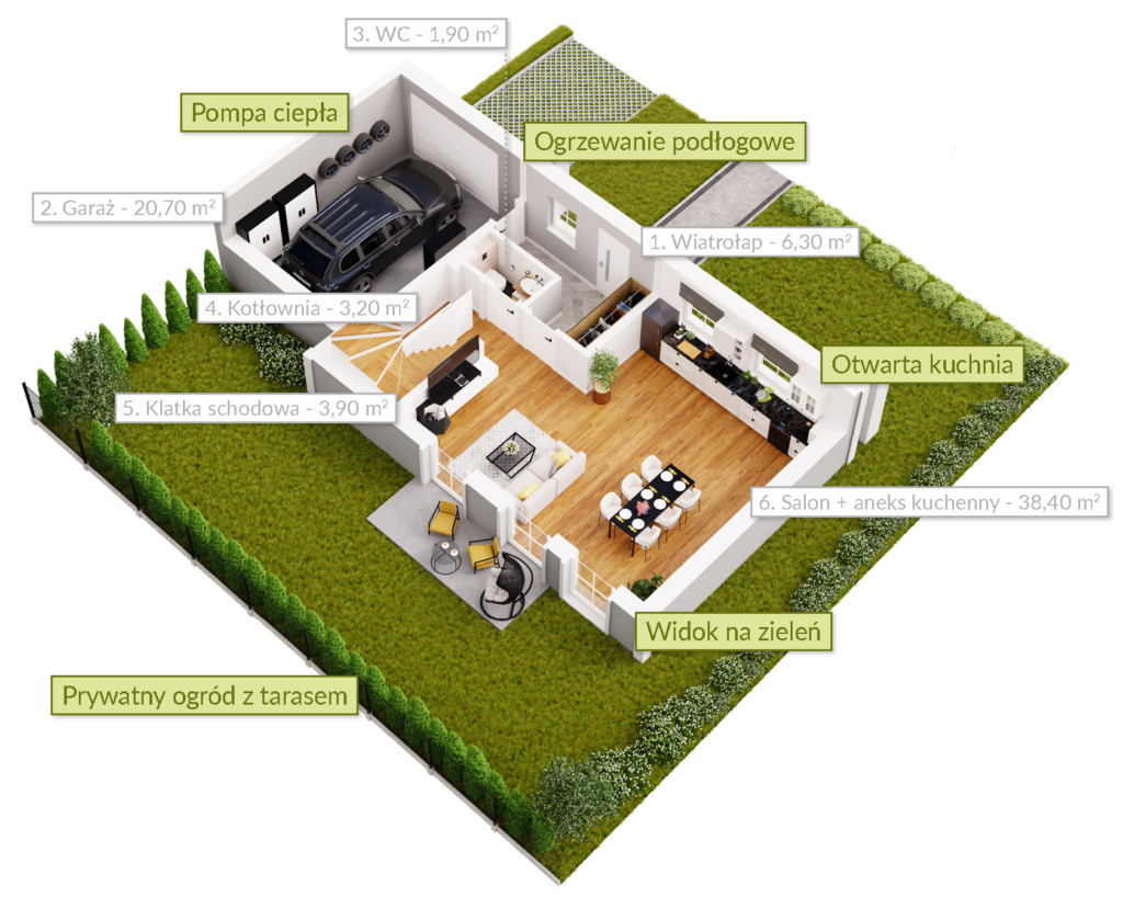 | 6 | Salon + aneks kuchenny | 38.4 m2 |